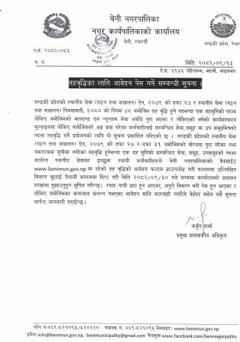 तहवृद्धिका लागि आवेदन पेस गर्ने सम्बन्धी सूचना ।