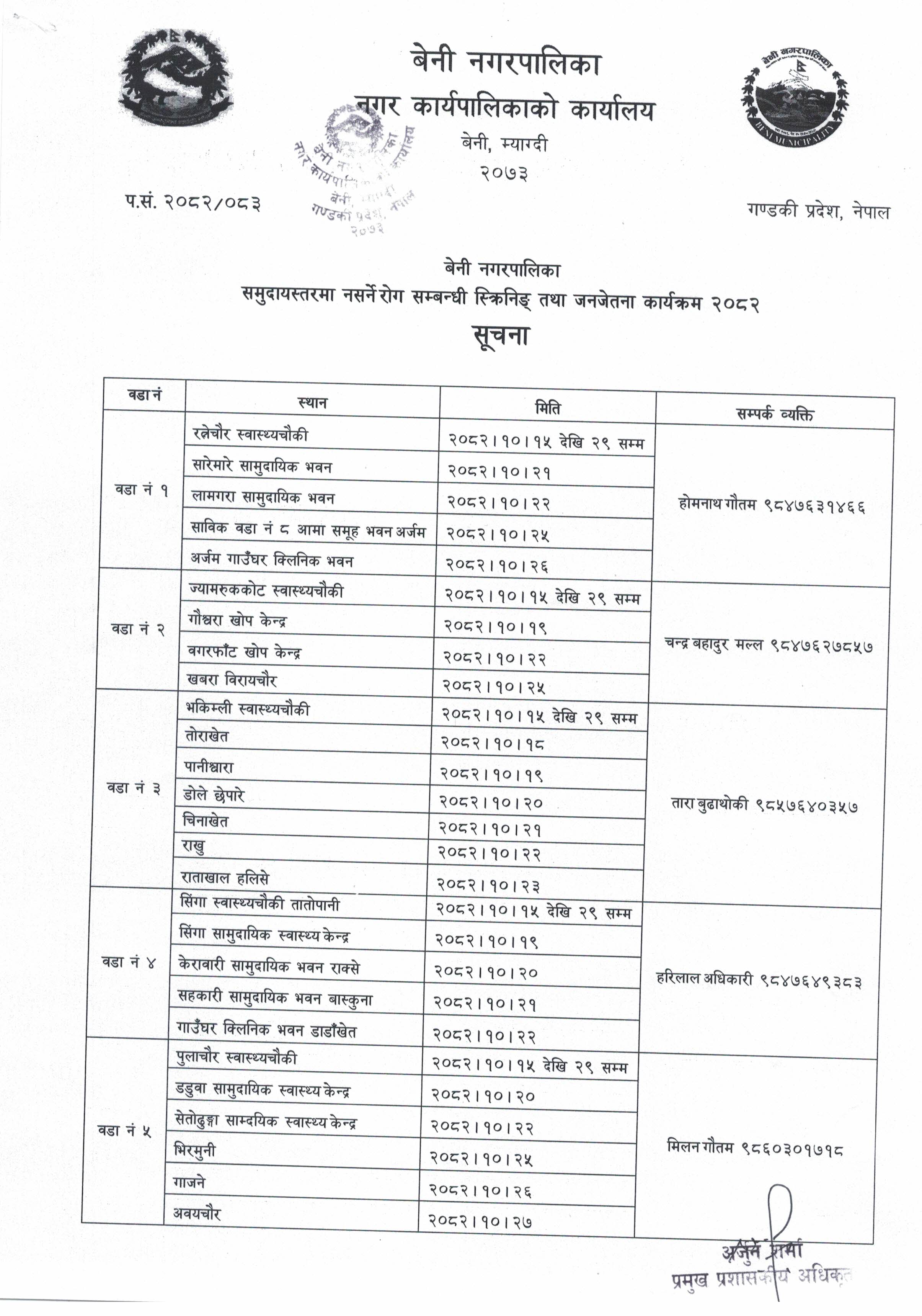 » समुदायस्तरमा नसर्ने रोग सम्बन्धी स्क्रिनिङ् तथा जनजेतना कार्यक्रम २०८२