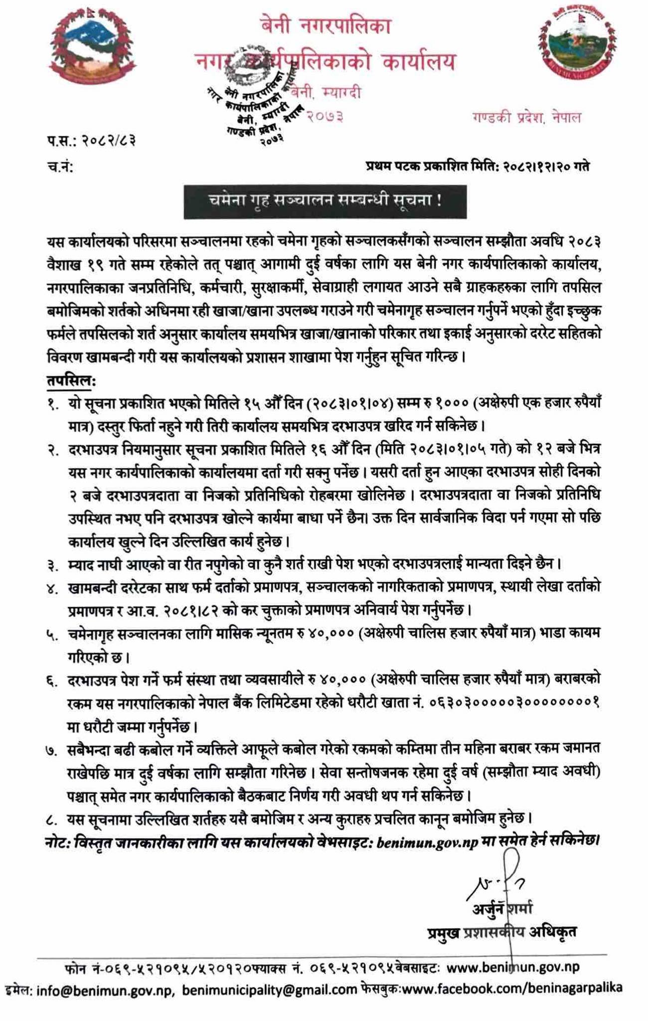 बेनी नगरपालिकाको बसपार्क सञ्चालन तथा व्यवस्थापन कार्यविधि, २०८२