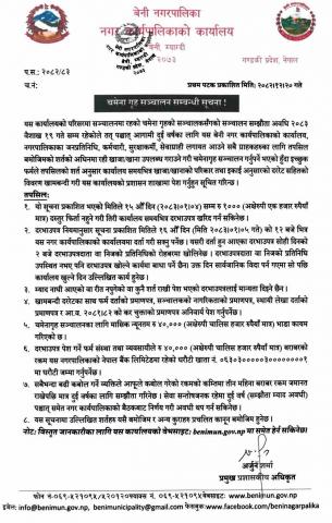 बेनी नगरपालिकाको आर्थिक सहायता वितरण कार्यविधि, २०८२