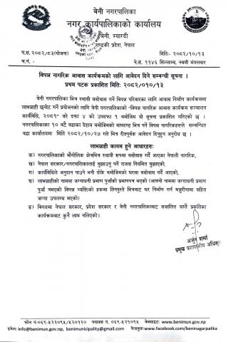 विपन्न नागरिक आवास कार्यक्रमको लागि आवेदन दिने सम्बन्धी सूचना ।
