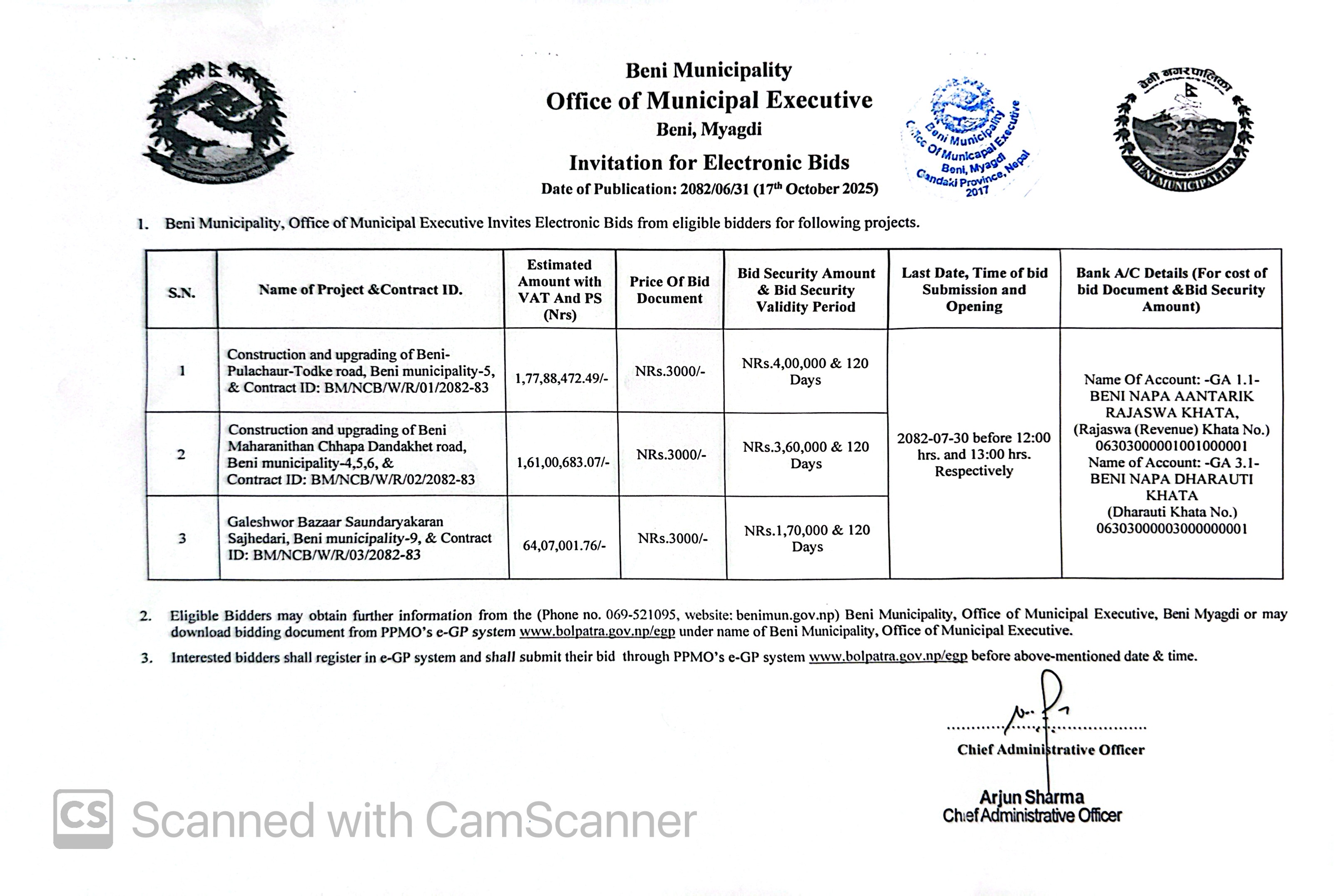Invitation for Electronic Bids ( Contract ID: BM/NCB/W/R/03/2082-83, Contract ID: BM/NCB/W/R/02/2082-83 & Contract ID: BM/NCB/W/R/01/2082-83, )