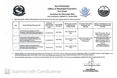 » Invitation for Electronic Bids ( Contract ID: BM/NCB/W/R/03/2082-83, Contract ID: BM/NCB/W/R/02/2082-83 & Contract ID: BM/NCB/W/R/01/2082-83, )