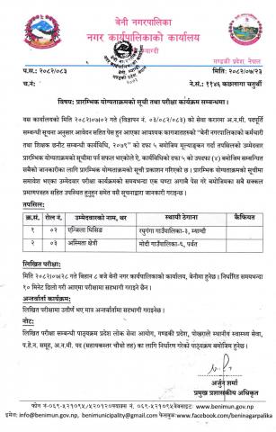 प्रारम्भिक योग्यताक्रमको सूची तथा परीक्षा कार्यक्रम सम्बन्धमा ।