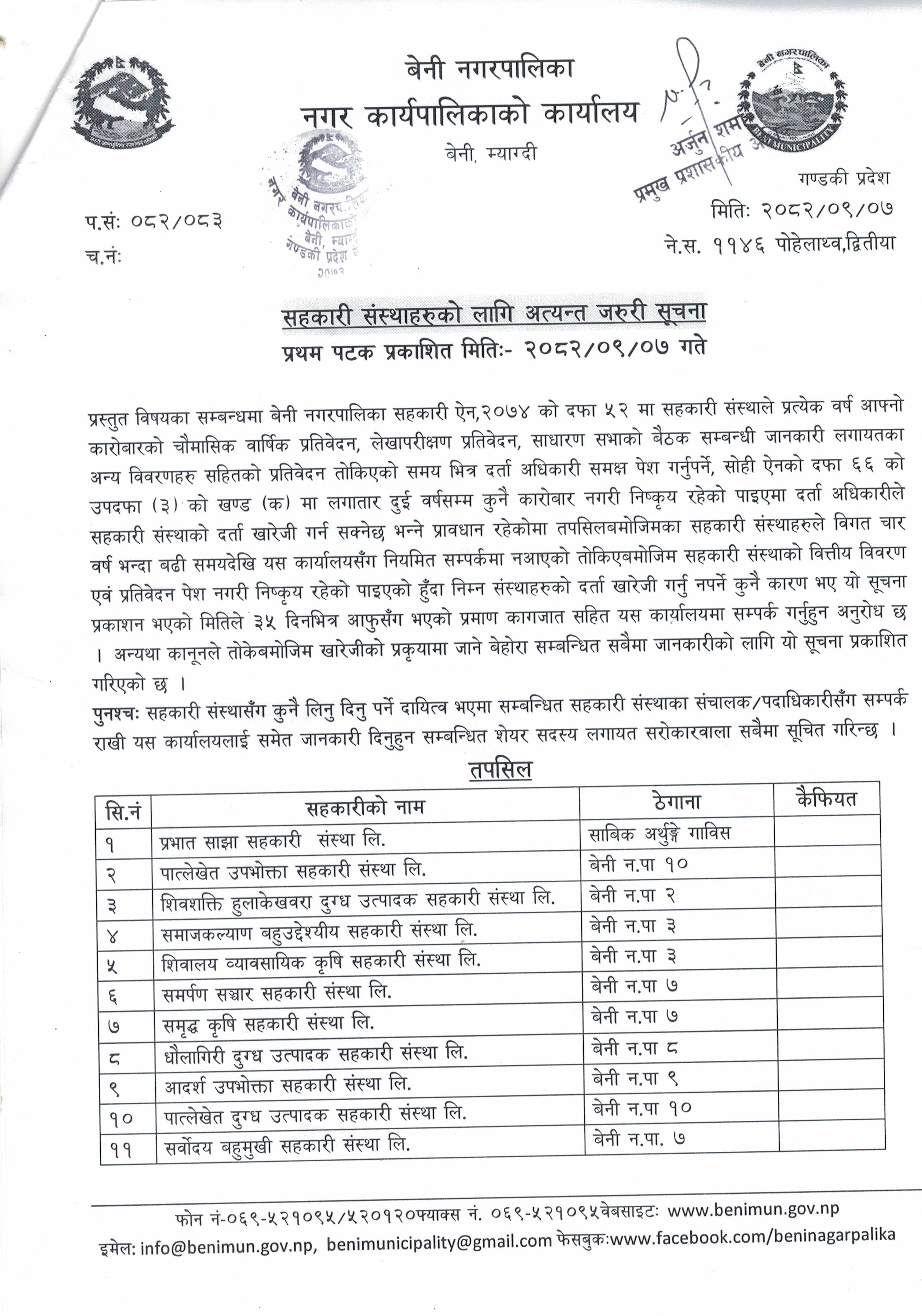 » सहकारी संस्थाहरुको लागि अत्यन्त जरुरी सूचना