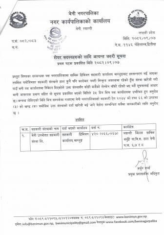नदिजन्य पदार्थ बिक्रिका लागि बिद्युतीय बोलपत्र आह्वान सम्वन्धी सूचना